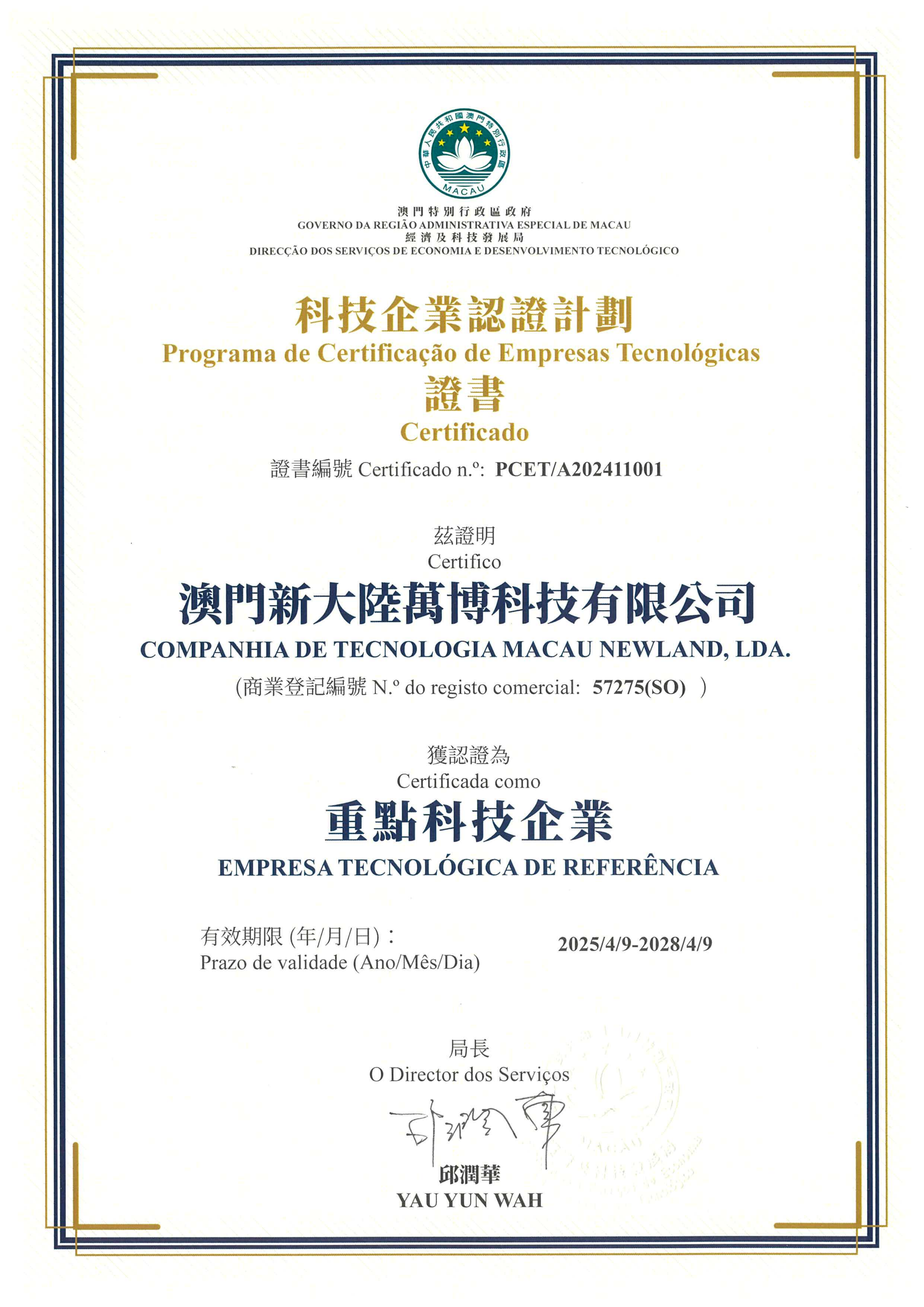 據(jù)了解,《科技企業(yè)認證計劃》從企業(yè)業(yè)務(wù)內(nèi)容與規(guī)模、研發(fā)投入、創(chuàng)新能力等多個維度進行綜合評估,根據(jù)評分結(jié)果授予符合條件的企業(yè)"潛力型科技企業(yè)"、"成長型科技企業(yè)"或"重點科技企業(yè)"認證資格。其中,"重點科技企業(yè)"需在各項關(guān)鍵指標(biāo)上均達到較高水平,代表澳門科技企業(yè)的領(lǐng)先實力與發(fā)展標(biāo)桿。截至目前,澳門僅有七家企業(yè)獲此認證,是當(dāng)前科技企業(yè)認證體系中的最高級別。
