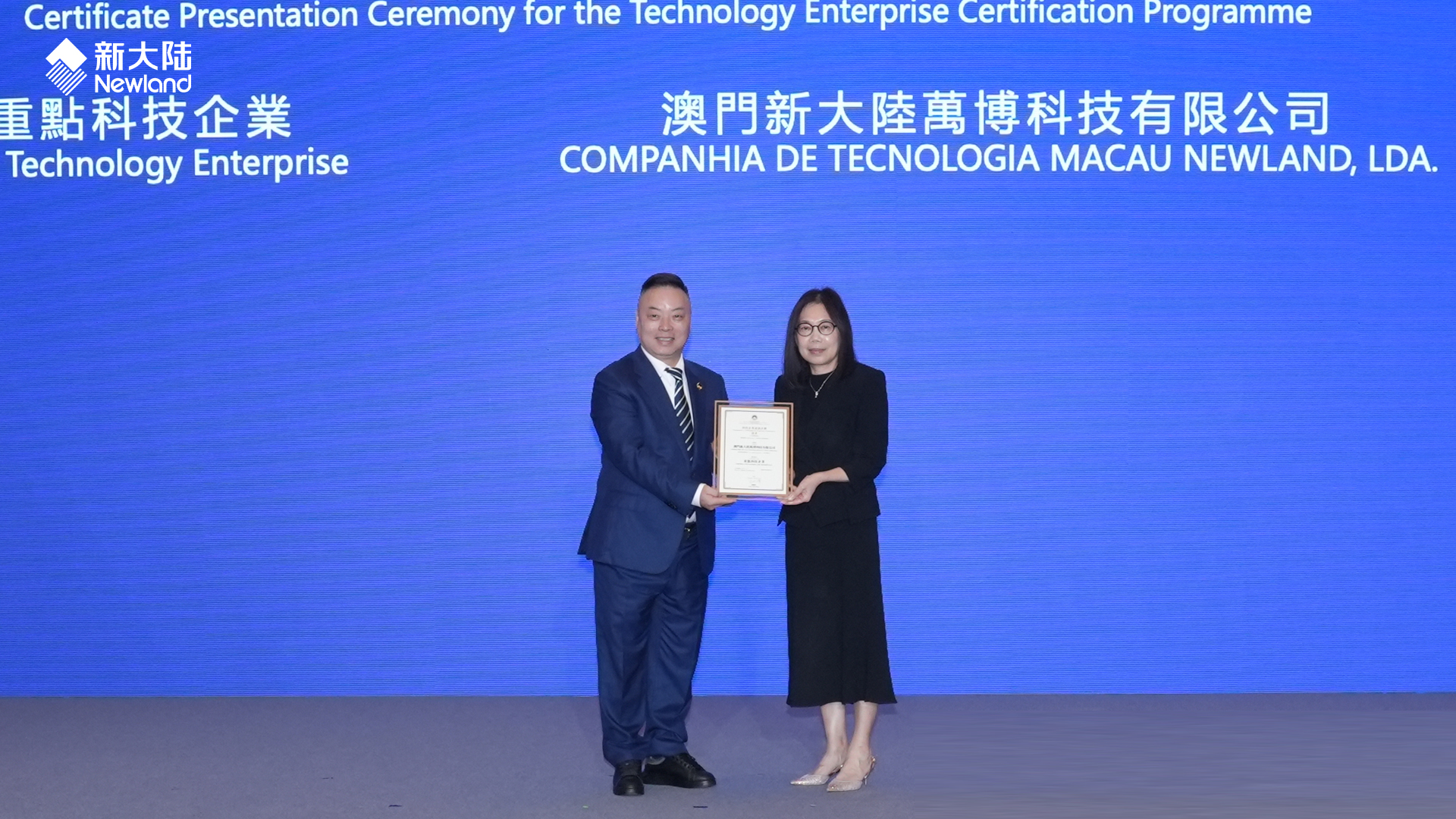 澳門新大陸萬博獲特區(qū)政府"重點科技企業(yè)"認證